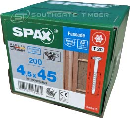 Spax Stainless 4.5 x 45mm x 200 box facade screw