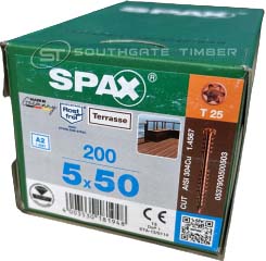 Spax Stainless Antique finish 5.0 x 50mm x 200 Box decking screw