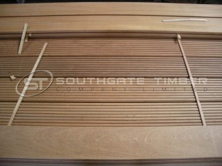 Generally a Golden brown colour with occasional lighter and darker colour boards. Boards are hardwearing and dense. Boards are packed with ‘cross stickers’ to aid in drying and make the bundles safe to handle these can sometimes leave marks across the boards which are not regarded as a defect. Boards are generally supplied to full lengths or a fraction over the length with waxed ends to assist in reduction in end splitting. Occasional boards will have slight areas of missed machining and possible the odd ‘pin worm’ holes these are again allowed within this specie and should be accounted for in the recommended waste to be factored in.